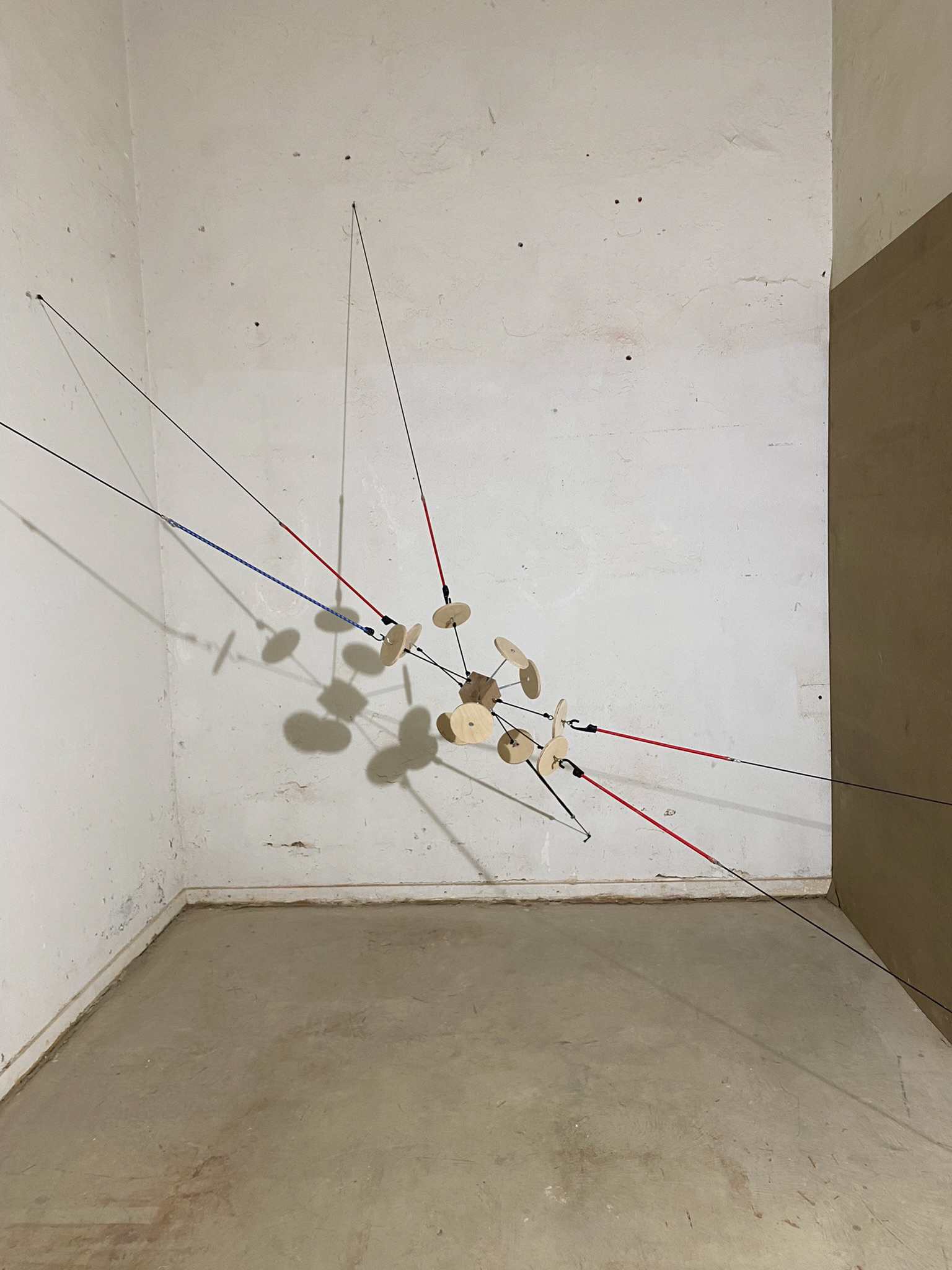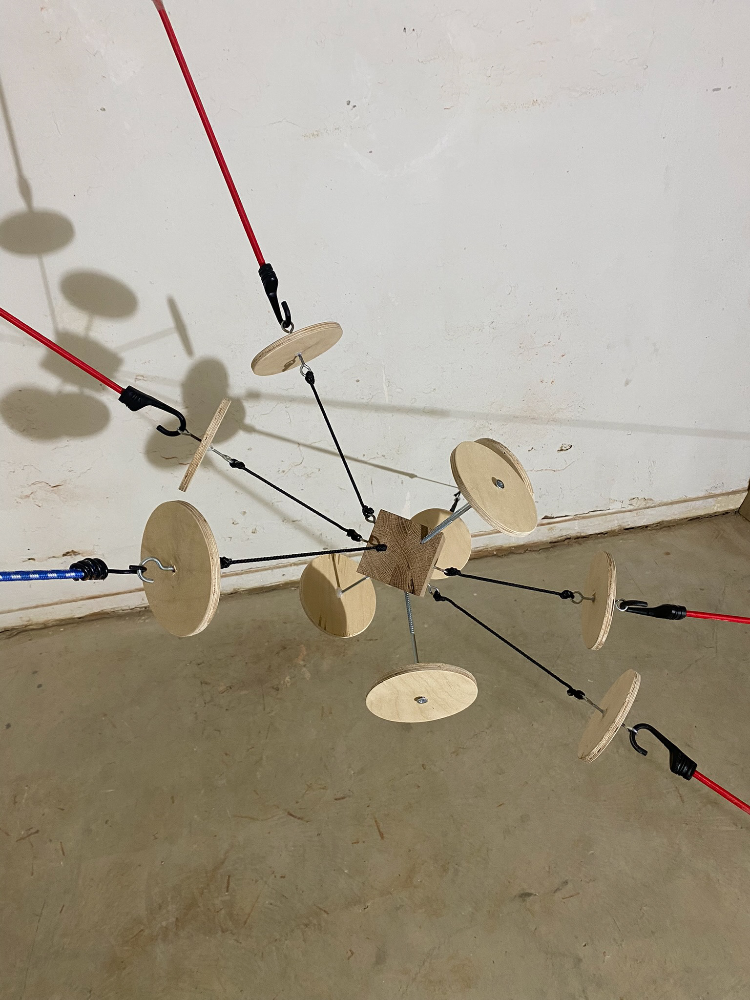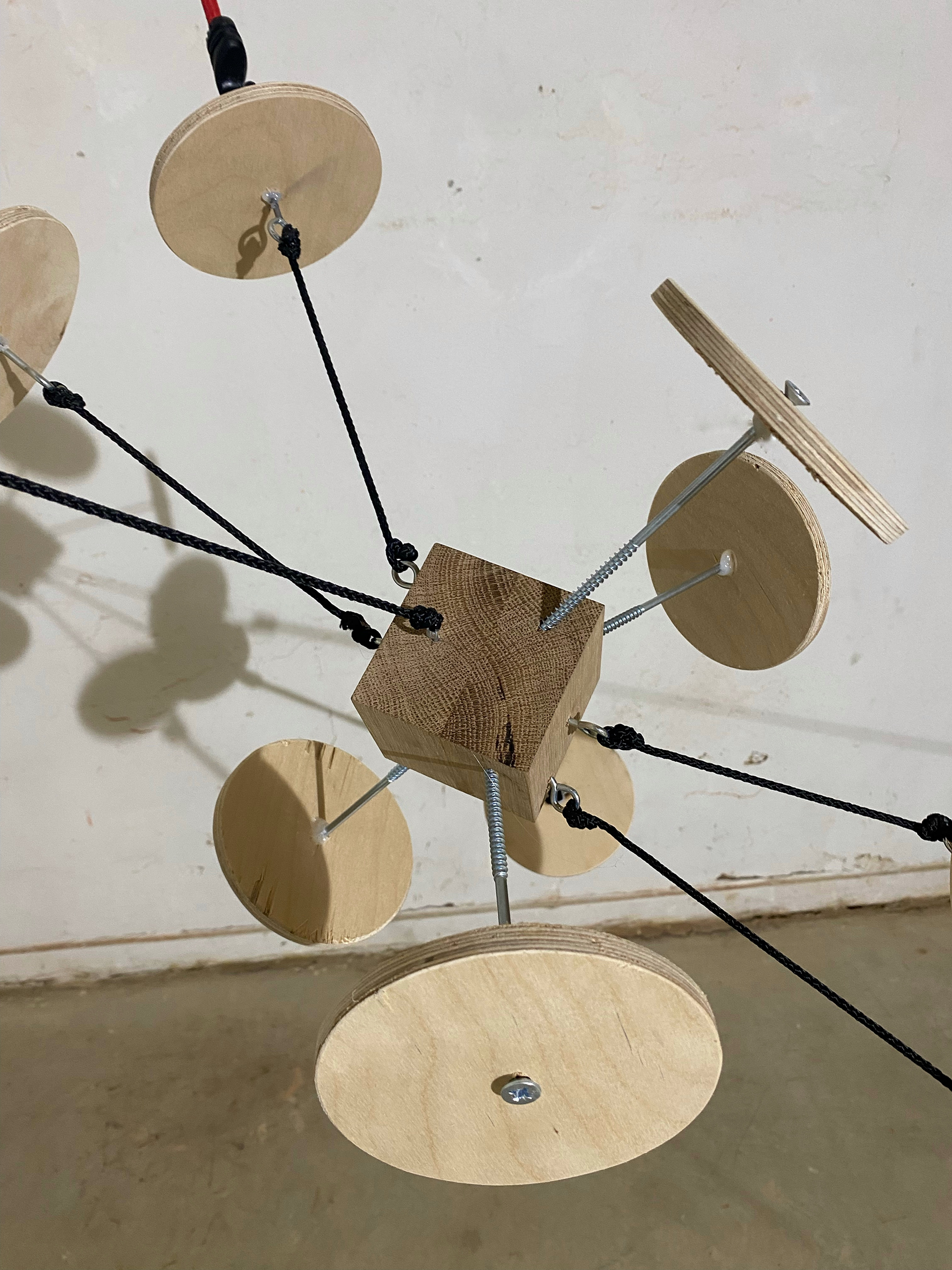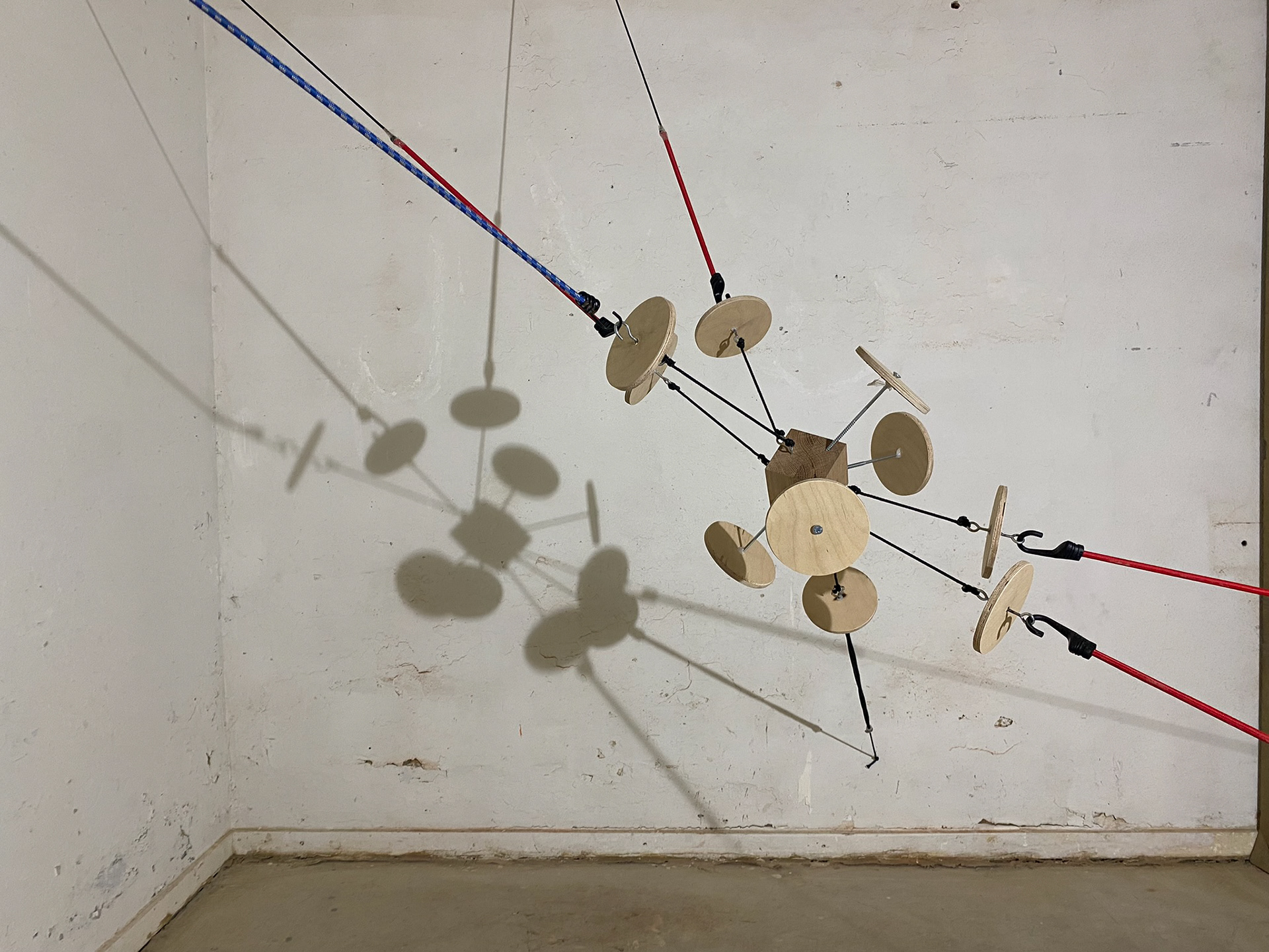 wood, metal, rope, bungee cord, 2023, Outer space: 228 x 276 x 289 cm, Internal structure: 48 x 56 x 63 cm