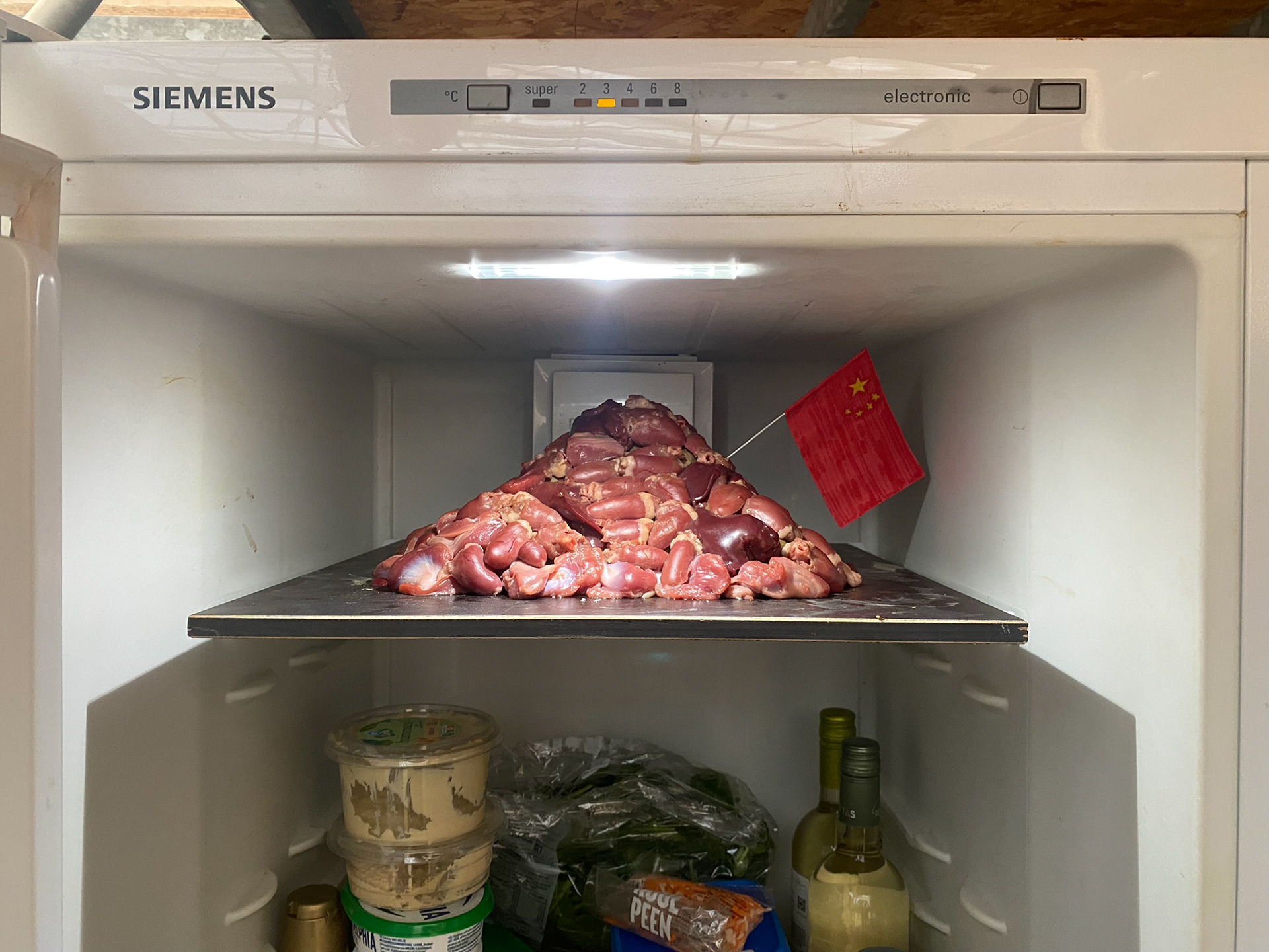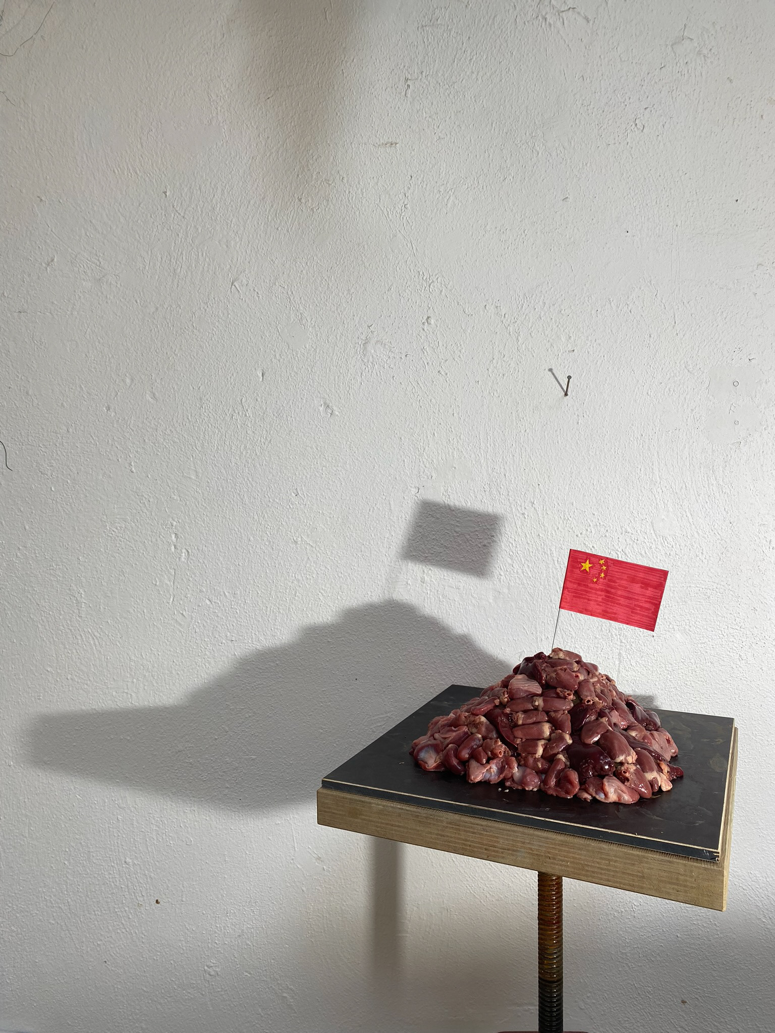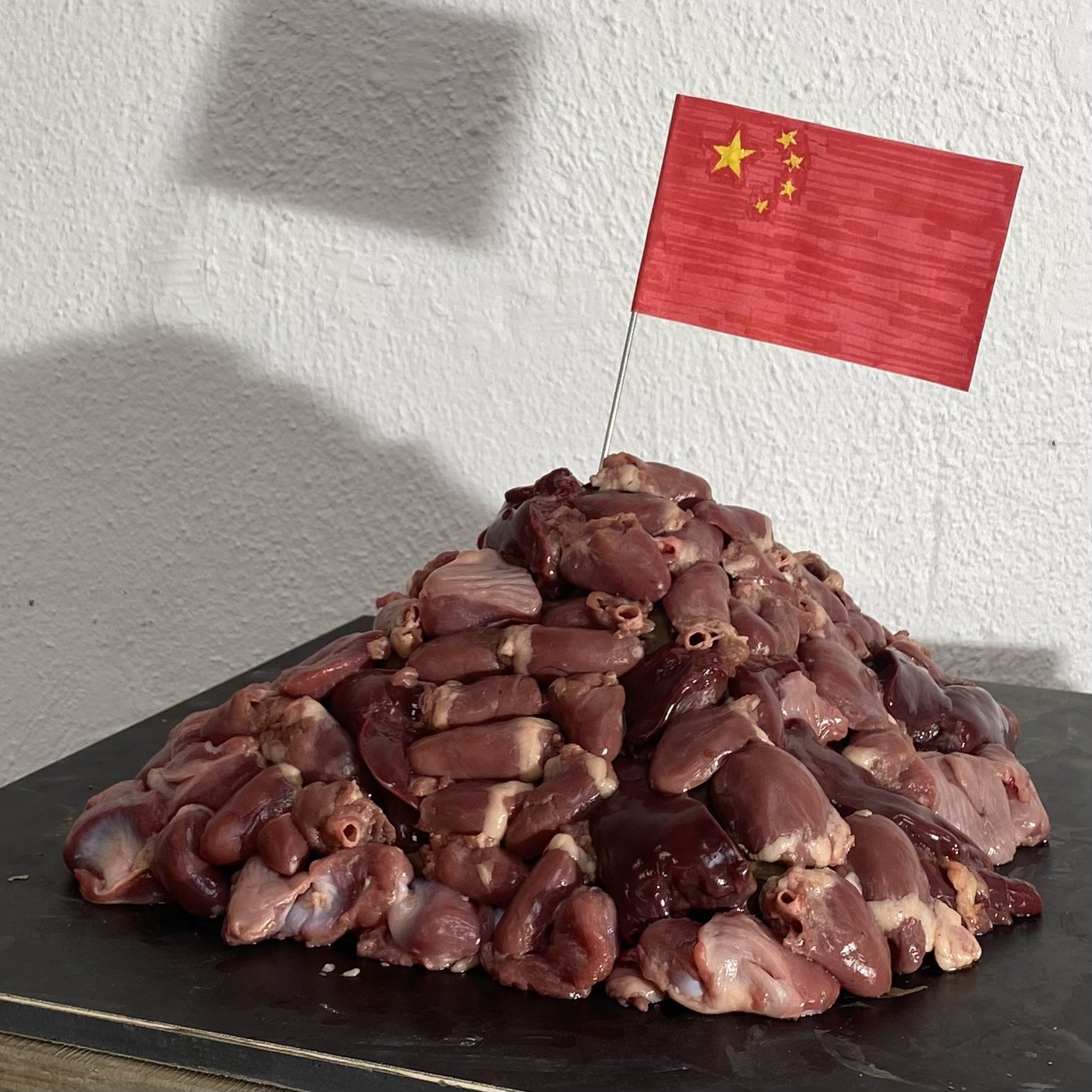 proposal model: hearts, livers, gizzards, clay, steel, paper, markers, 2024, 28 x 28 x 24 cm